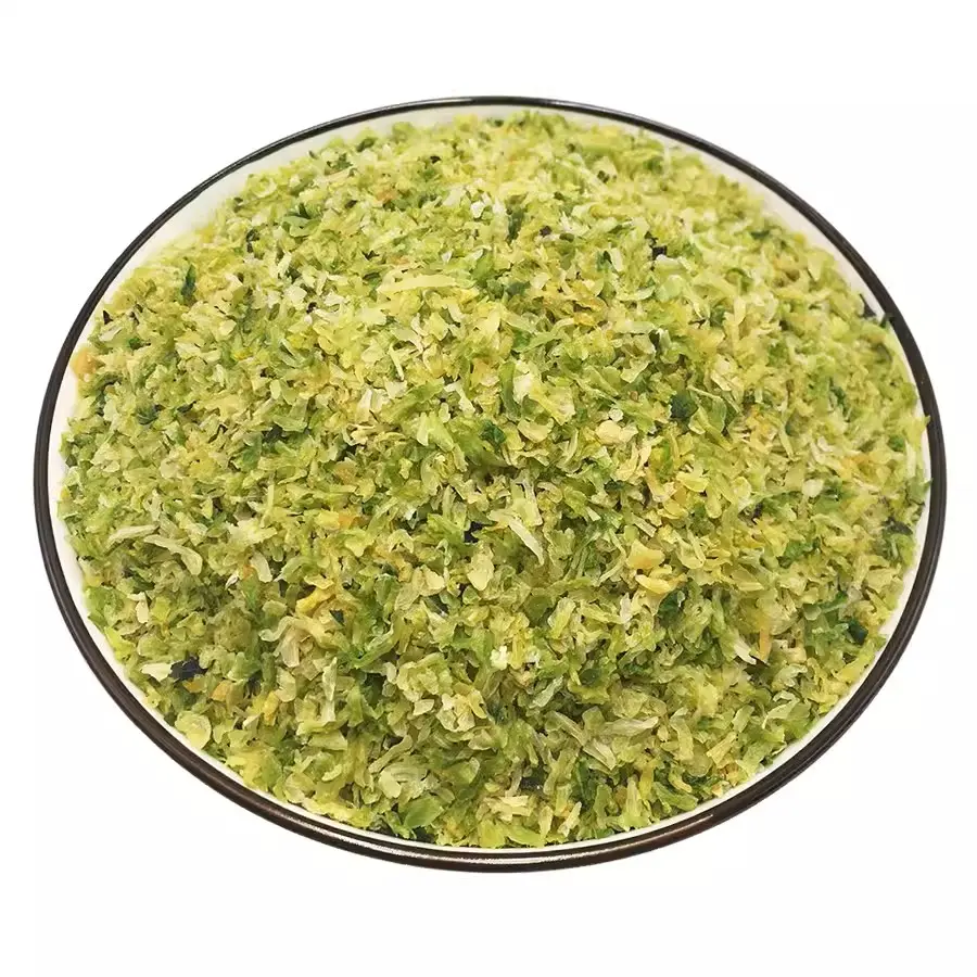 AD Cabbage is made from fresh cabbage dehydrated using hot-air drying technology. Through a segmented low-to-medium temperature drying process, 90%-95% of moisture in cabbage leaves is removed while preserving natural dietary fiber and partial vitamins. The final product appears pale yellow-white with a light, crispy texture that regains near-fresh cabbage’s pliable texture after rehydration. It is a cost-effective, storage-stable dried vegetable ingredient.